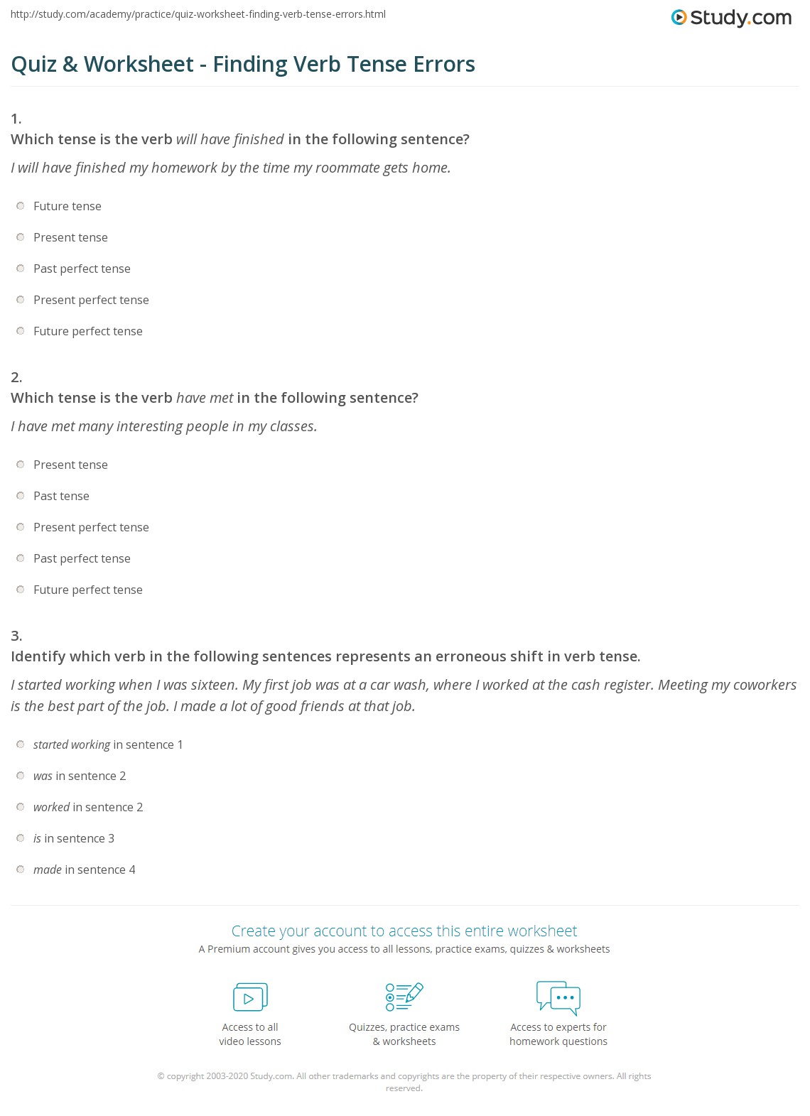 Sentence Error Worksheets : Quiz Worksheet Finding Verb Tense Errors Study Com /. They should correct the error . No changes to the sentence's intended meaning also, it is important to note that . Each sentence given below contains an error. Errors are mostly related to capitalization, punctuation, . Hand out participant's worksheet 1 and ask them to discuss each of the sentences or questions which contain common student errors.